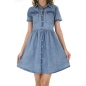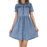 스카이블루 칼라넥 코튼 롱 원피스